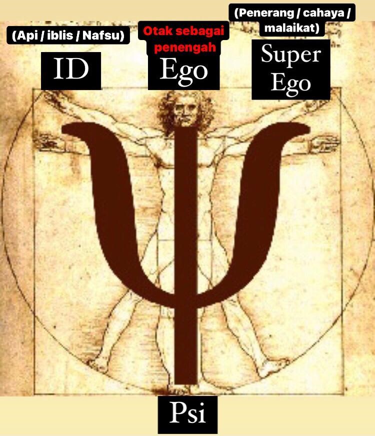 Trisula Wedha Banyak orang yang belum sadar bahwa manusia tercipta dari ke tiga elemen materi pembentuk oleh sang pencipta, atau yang penulis sebut dengan Trisula (Wedha Java), Trisakti, Tritunggal atau Psi (Sigmund Freud). Ketiga elemen tersebut adalah Tanah, Air dan Udara yang ketiga elemen tersebut penulis anggap sebagai penetralisir elemen Api pembentuk Iblis atau jin dan juga sebagai penetralisir elemen Cahaya pembentuk Malaikat. Dalam Psikologi, Sigmund Freud menyerukan teori yang sama hingga terciptanya lambing dasar Psikologi, Yaitu Id – Ego – Superego berbentuk sama seperti Trisula, Tritunggal atau Trisakti. Kesemua material tersebut dapat diambil garis besar sebagai zat yang diadopsi dari Bahasa Arab yaitu Dzat atau dikenal lain sebagai Dzatullah. Peran Tanah sebagai Zat Padat, peran air sebagai Zat Cair, Peran udara sebagai Zat Gas. Jadi manusia memiliki tiga dzat penetralisir kedua belah pihak yang selalu berperang antara Iblis dan Malaikat atau Api dengan Cahaya. Penerapan tersebut sama dengan pemikiran Sigmund Freud dalam lambing Psi-nya yaitu Id – Ego – Superego, dimana Id berperan sebagai naluri dasar kebutuhan manusia, yaitu Hawa Nafsu (Perilaku Iblis) Ego sebagai penengah antara Id dan Superego dan Superego berperan sebagai moral-moral yang berlaku. Dalam cerita kenabian yang dipeluk oleh Agama Muslim dialog antara Nabi Sulaiman disebutkan bahwa Nabi Sulaiman pernah meminta, berdoa kepada Allah untuk memenjarakan Iblis, namun Allah menjawab : “Tidak ada baiknya memenjarakan iblis” dan Allah mengabulkan doa Nabi Sulaiman tersebut. Keesokan harinya Nabi Sulaiman bekerja berdagang dan bertanya kepada sobatnya, mengapa hari ini sepi sekali tidak ada pembeli? Ternyata setelah Allah mengabulkan doa Nabi Sulaiman untuk memenjarakan Iblis, orang-orang menyampingkan nafsunya untuk berbelanja yang ada dalam otaknya hanyalah akhirat dan kematian membuat semua orang pergi ke pemakaman dan mengingat kematian. Dari cerita tersebut tersirat dan kita bisa menilai bahwa dalam kehidupan ini keseimbangan diperlukan, darimana pedagang akan mendapatkan uang untuk makan kalau dagangannya berhenti. Kembali kepada materialisme, apakah anda pernah memasak menggunakan api? Walau sekarang ini banyak alat masak lain menggunakan elektrik berbahan dasar Besi namun Api tetap dibutuhkan. Reinkarnasi kepada alam mayat yang dikubur atau sisa abu bakar ditabur dalam laut maupun bercampurnya unsur hara tersebut akan dihisab kembali oleh alam berlarut-larut proses tersebut menjadi udara baru menjadi nyawa bagi makhluk hidup yang ada, proses lewat tumbuhan memproduksi O2 oksigen (udara segar) mirip halnya wewangian yang dibakar dari olahan bangkai kembang (dupa,hio, gaharu dll) kepada alam dan manusia itu lagi (Recycle) atau penguraian dzat yang natural lalu dimanfaatkan lagi oleh makhluk hidup lain menjadi kehidupan baru, pekerjaan alam dalam dialektika materi, pikir bocah angon yang baru kemarin lahir adalah kuburan yang sudah puluhan tahun menumpuk banyaknya mayat, makam/kuburan jadi penuh, habis penuh barulah kiamat pikir cah angon, nyatanya kuburan para manusia itu akan ditimpa lagi dengan mayat baru (mengandung infinity), Arabb sekalipun tak memberi nama pada batu nisan benar bukan, mungkin beberapa makam orang penting akan disejarahkan, bagaimana dengan abu atau peti mati dalam agama yang lain? Akankah itu penuh atau lenyap? Tiap agama memiliki kebenarannya dan nilai penting masing-masing. Hanya saja banyak digunakan sebagai palu atau alat bagi mereka penggerak gonjang-ganjing kapitalizmi. Pun ada tingkat wali atau habib dari keturunan keluarga mewah dimana makamnya dibuatkan istana megah iup tak perlu berhadapan langsung dengan hujan atau badai matahari karna kita bisa berdoa di dalam istana makamnya, lalu bagaimana nasib wali atau habib yang terlantar, ada beberapa wali yang tidak terkenal bukan terlahir dari keluarga bangsawan namun ia tetap wali, yang memiliki istana dan yang memiliki penggerak dalam doa akan lebih banyak mendapatkan kiriman doa yang datangnya lewat faktor keluarga terkenal memiliki penggerak logikanya memang karna istananya lebih nyaman terurus dibanding makam biasa harus panas-panasan bahkan kebanjiran hujan. Sebuah contoh materi dapat mempengaruhi hasil bahkan dalam kondisi moral kematian halnya ziarah serta doa-doa (paket surgawi ketika mati) pun materi bisa berkehendak lebih untuk melakukan banyak kebaikan seperti beramal dan bertindak dalam segala macam hal ibadah diluar kemampuan manusia non material-able. Ilusi pocong terbungkus balutan kain kafan yang putih menjadi seram dalam bayang-bayan pandemonium dianggap setan berbanding terbalik pada ka’bah berbalut bungkusan sarung hitam seakan sangat suci, hitam putih bukan terbalik tapi logika tuhan yang sengaja membalikan hal tersebut bahwa semua ini penulis katakan dalam tulisan hanya untuk kedamaian. Tesisnya dibenarkan oleh material batu Hajar Aswad konon material spesial dari surga awal kedatangannya berwarna putih terang sekarang jadi Hitam gelap kemerah-merahan akibat dosa pertumpahan darah pun luka itu sudah infeksi menjadi hitam, kata Hajar Aswad, bisakah kita putihkan kembali bersama-sama? Jual saja asas Gotong royong simerah putih kepada dunia tuk bayar hutang sekaligus budi daripada jadi rongsokan jika tidak dipakai.Kepada Dialektika untuk meneruskan agar dapat berkembang nan maju ke tesis-tesis yang baru nanti jika mereka bilang haram dan tiada saksinya. Ini Interaksi Material yang penulis bawakan dapat dibuktikan bahkan kitab yang sudah berbicara. Kalau kalian bilang Darwin itu benar cuma karna tidak ada yang tau dan tidak ada saksinya, jadilah wujud dari saksi tersebut. Ilmu-ilmu yang terdahulu dianggap benar dan memang tidak dianggap absolut karna hanya bagian dari “Imajiner” padahal untuk mencari tau dan meneliti kepada yang alam atau Science itu boleh sah-sah saja, tidak haram kok. Dialektika yang : Benda diatas pikrian, lalu benda lah yang menang, jadi Benda (Uang) yang menggerakan anda dala